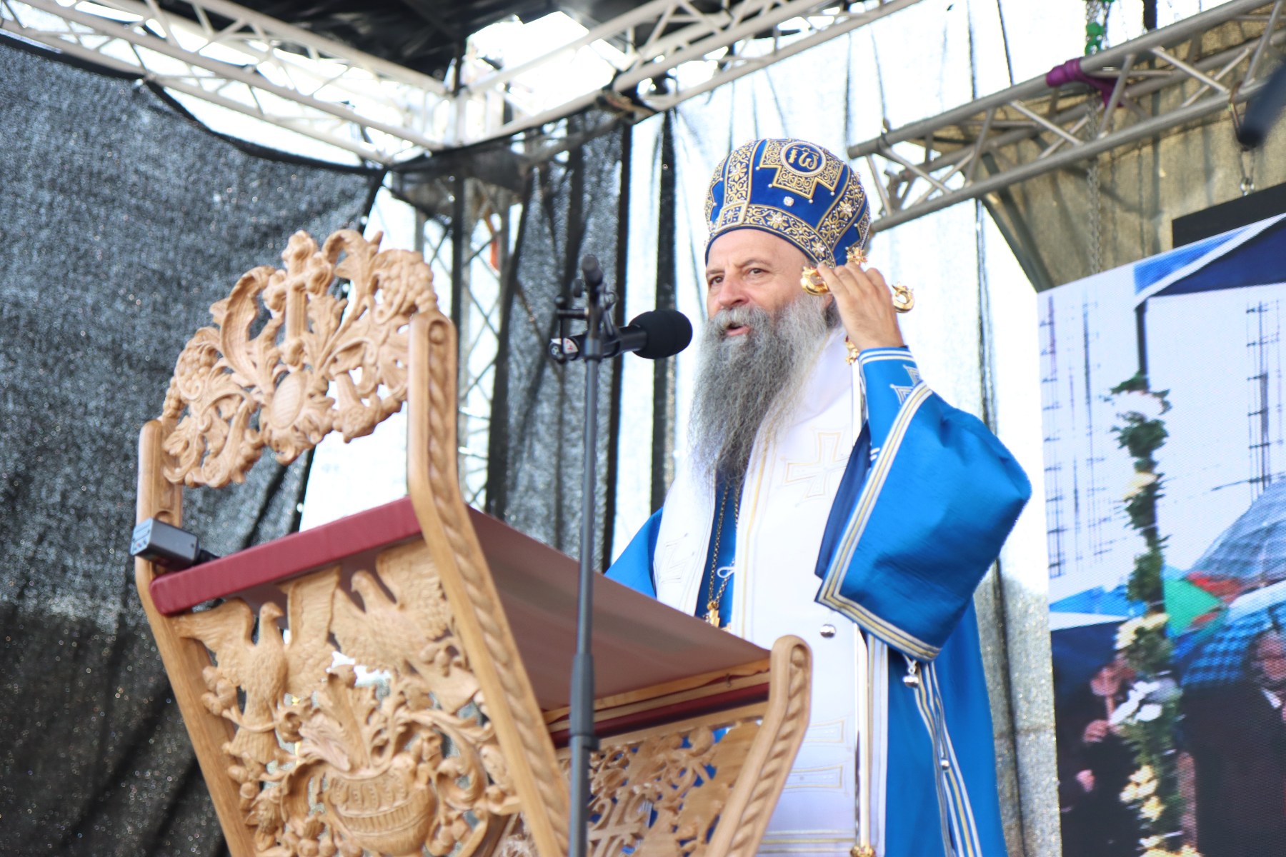 – Ми знамо да као што је човјек без душе леш, тако је и свака српска заједница, мјесто и насеље које у себи нема храма мртво насеље. Оно може споља имати обрисе и форму, али оно не живи истим оним откуцајем православног срца које је почело за нас да куца срцем Светог Саве – рекао је патријарх српски Порфирије.