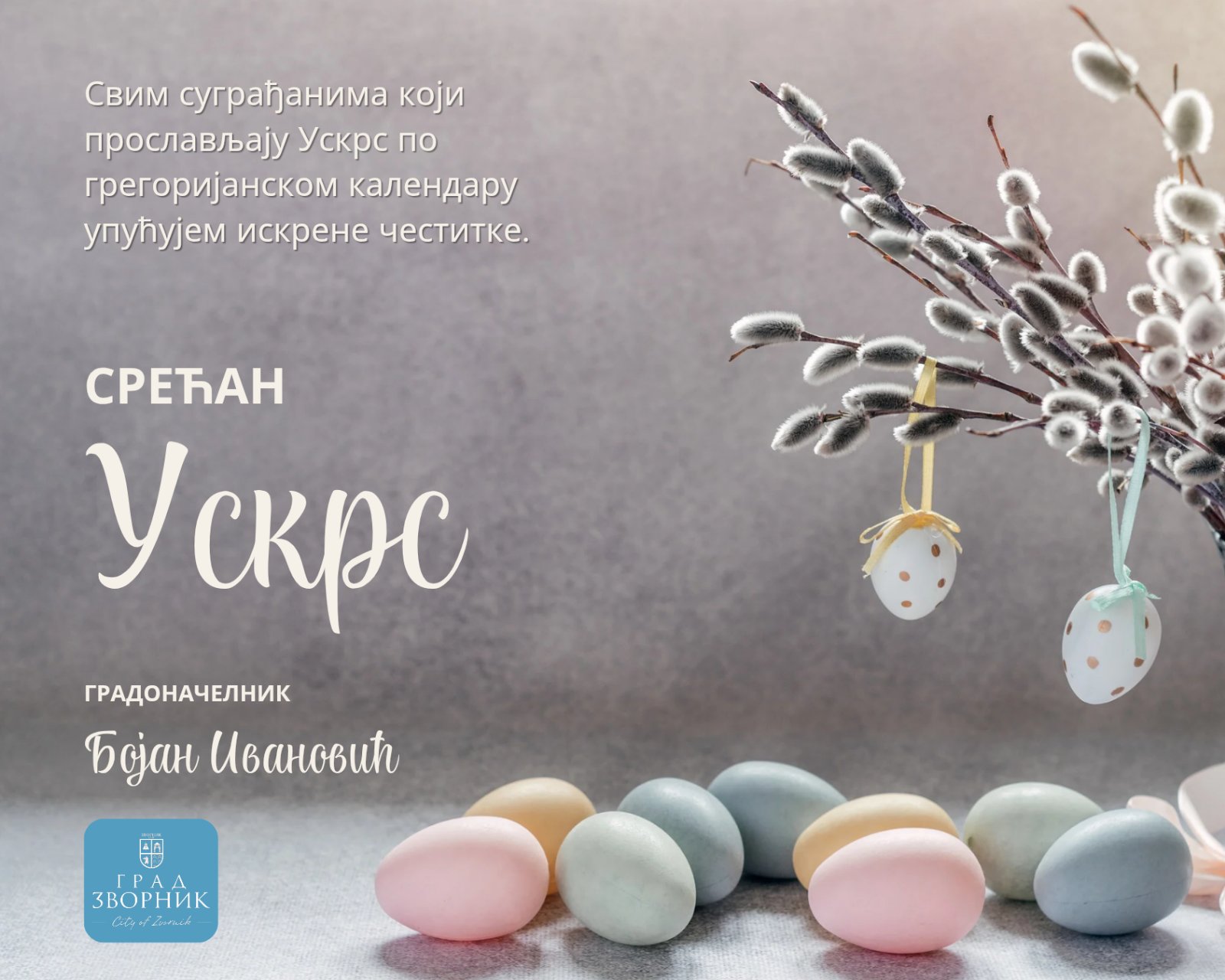 „Свим суграђанима који прослављају Ускрс по грегоријанском календару упућујем искрене честитке.